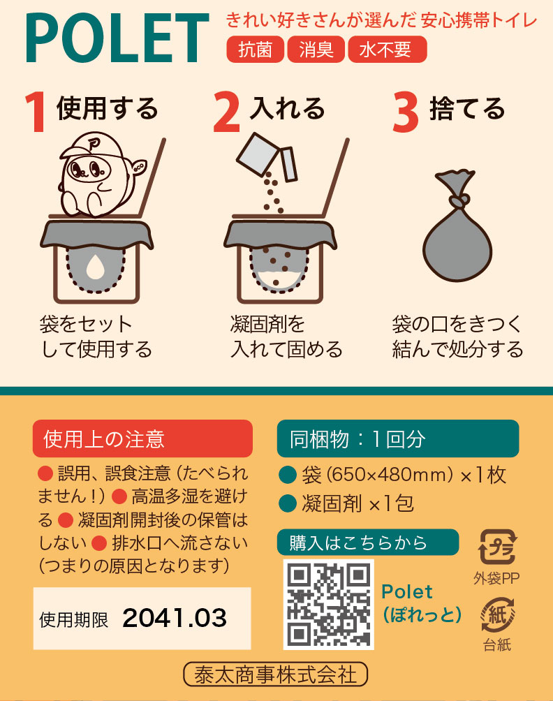 - 排便袋(650×480mm)・・・1枚