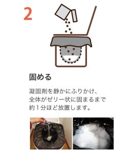 日本製の高品質で、凝固剤とポリ袋がセットになっています。
